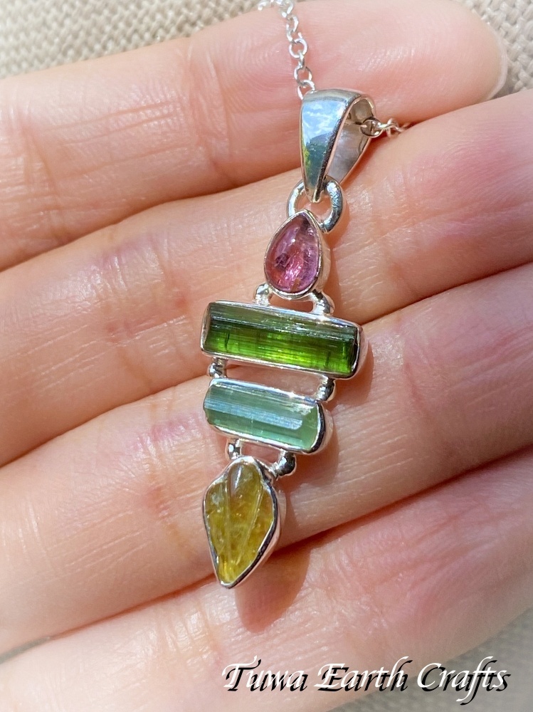 - > 【積極性・自信向上・金運アップ・運気アップ】1点もの 高品質トルマリン ペンダントトップ 原石 鉱物★グリーントルマリン ピンクトルマリン イエロートルマリン ハンドメイドアクセサリー お守り 癒し効果 天然石ヒーリングストーン ジュエリー