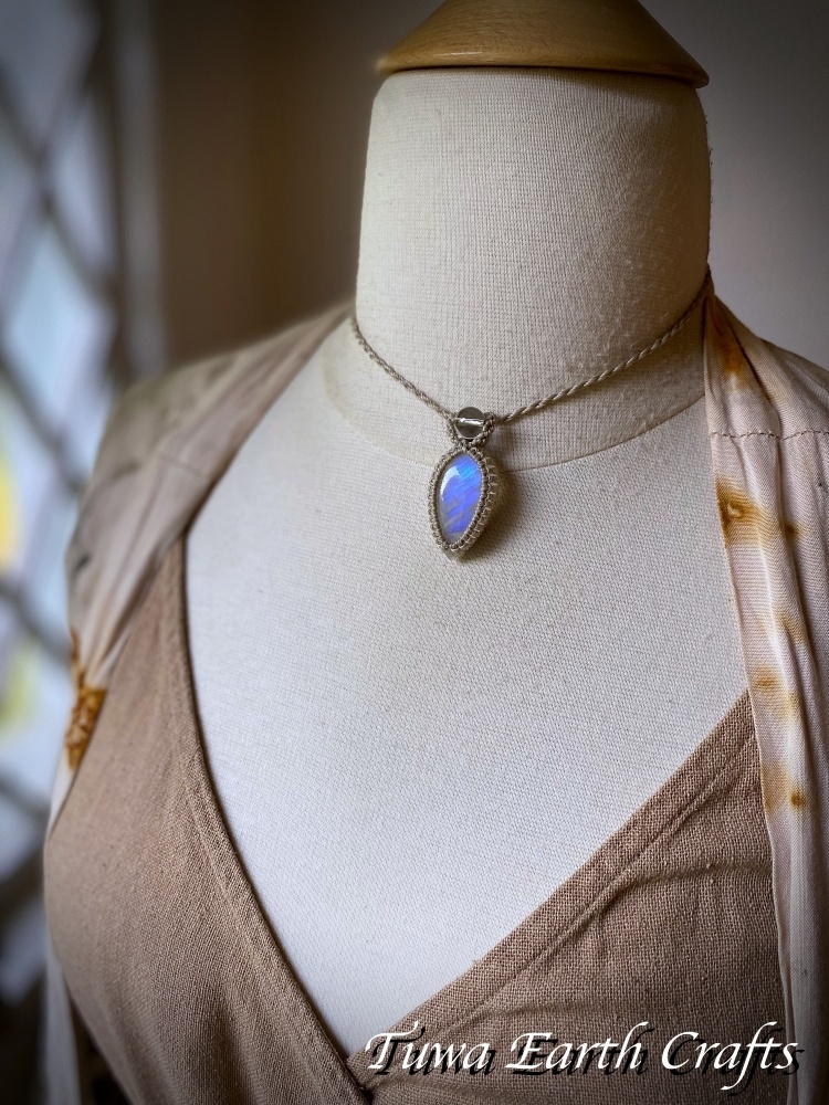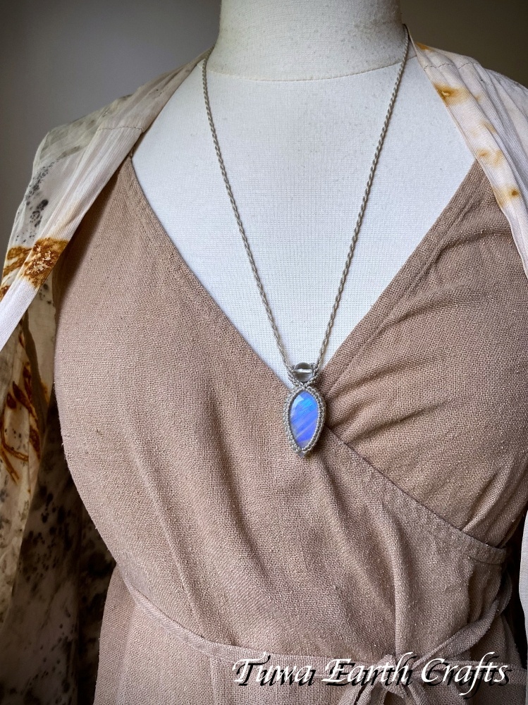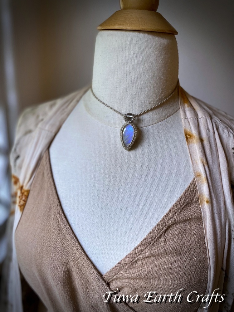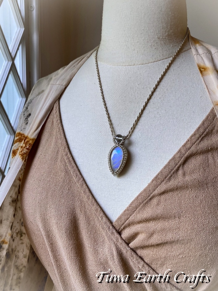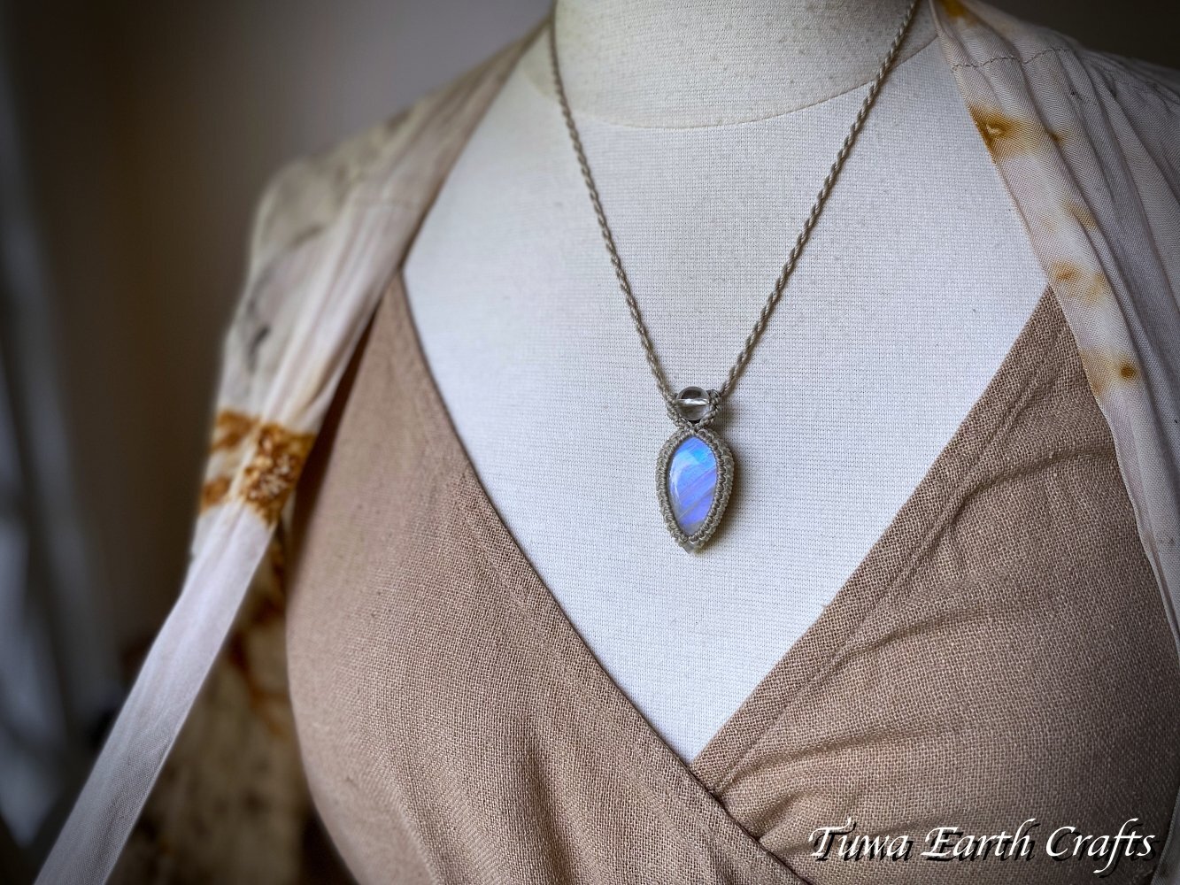 【直感力アップ・潜在能力を引き出す】大ぶり高品質ロイヤルブルームーンストーン ペンダント・ネックレス 1点もの 生成り シンプル&ナチュラル 天然石パワーストーンお守りアクセサリー マクラメ ハンドメイド 癒し効果 6月誕生石 [TUWA-1869]