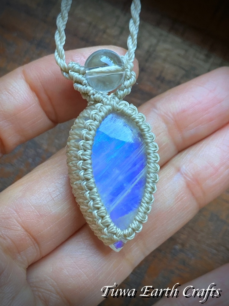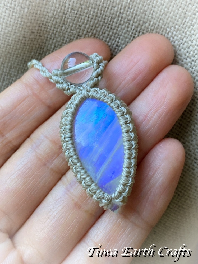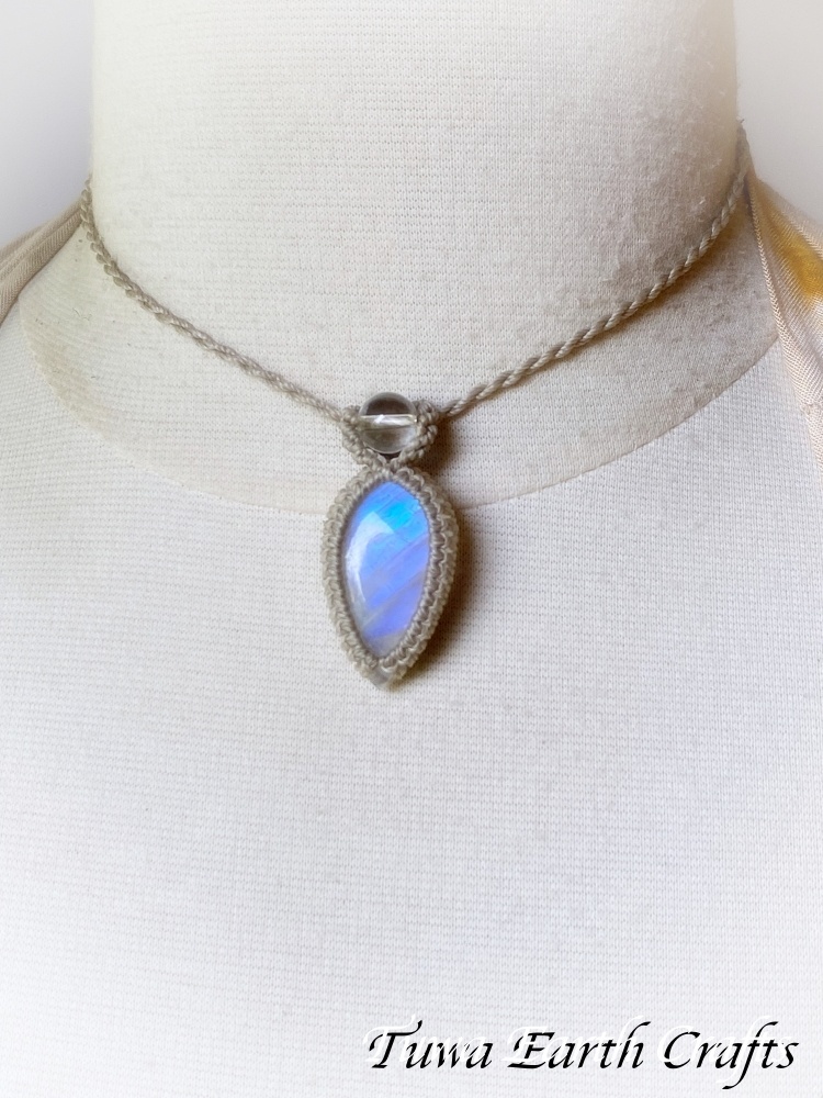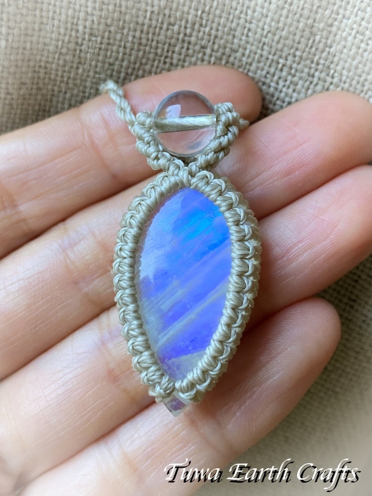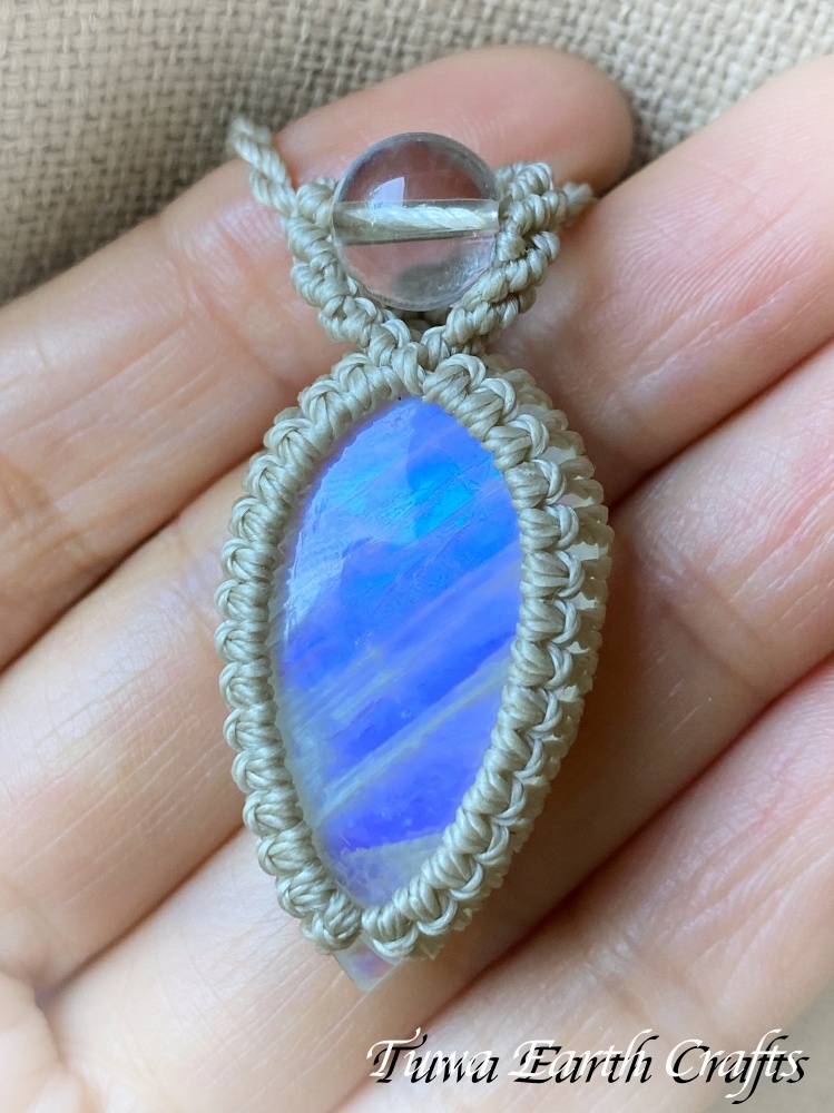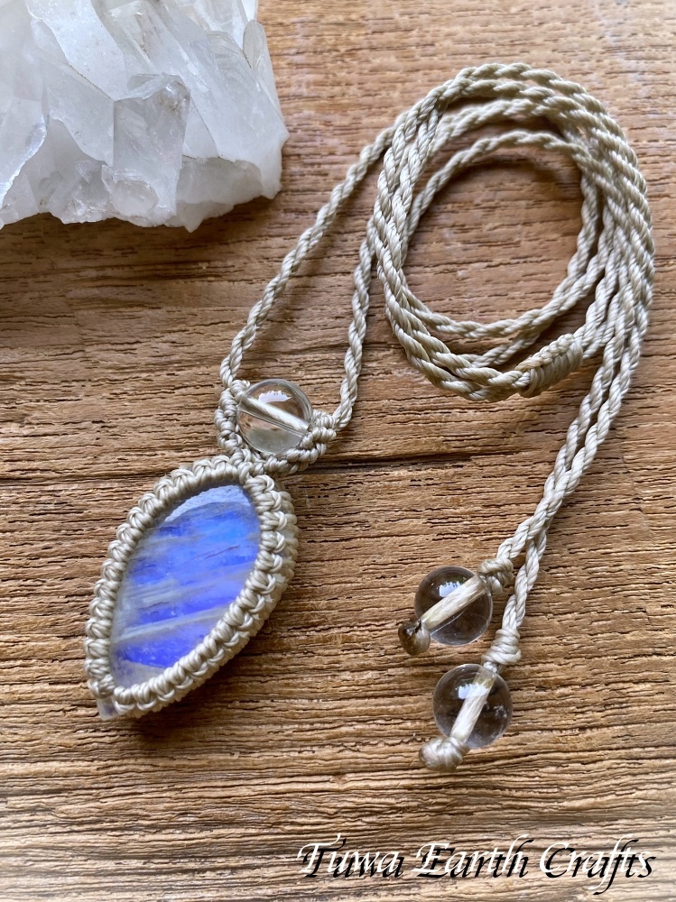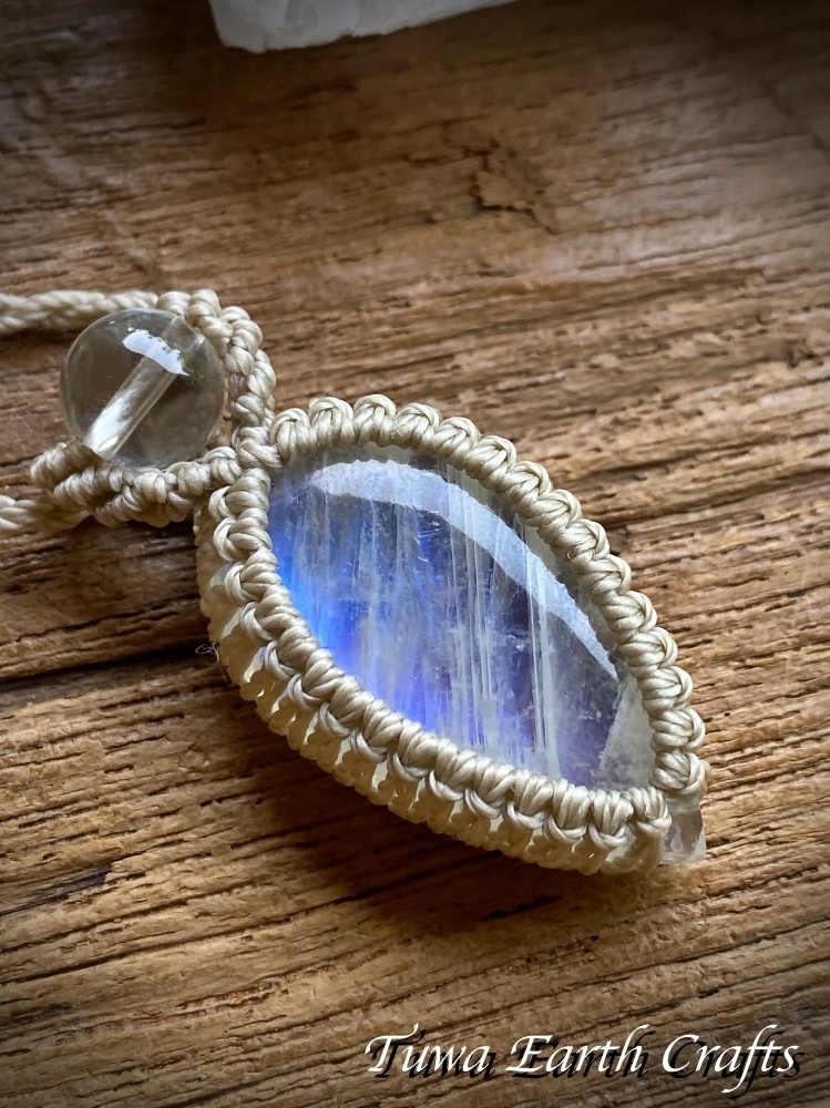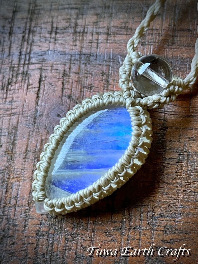 - > 【直感力アップ・潜在能力を引き出す】大ぶり高品質ロイヤルブルームーンストーン ペンダント・ネックレス 1点もの 生成り シンプル&ナチュラル 天然石パワーストーンお守りアクセサリー マクラメ ハンドメイド 癒し効果 6月誕生石
