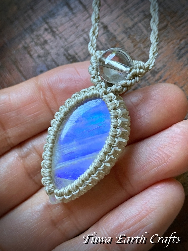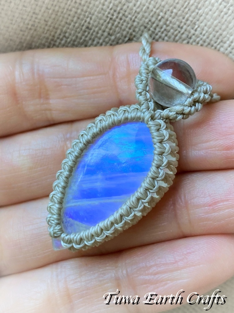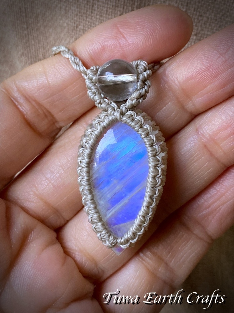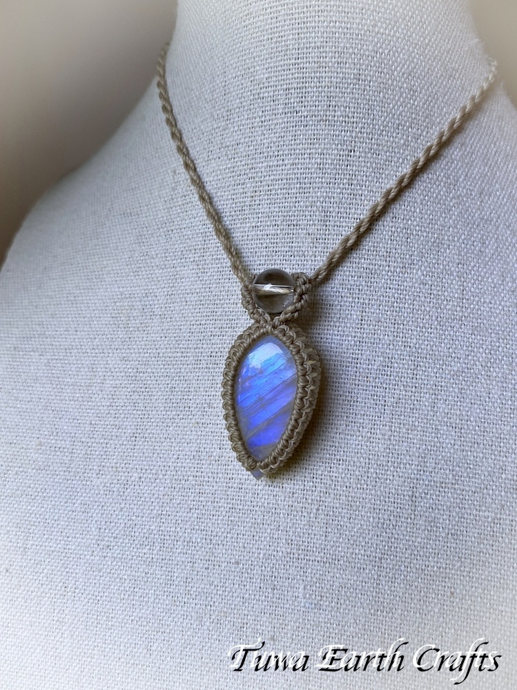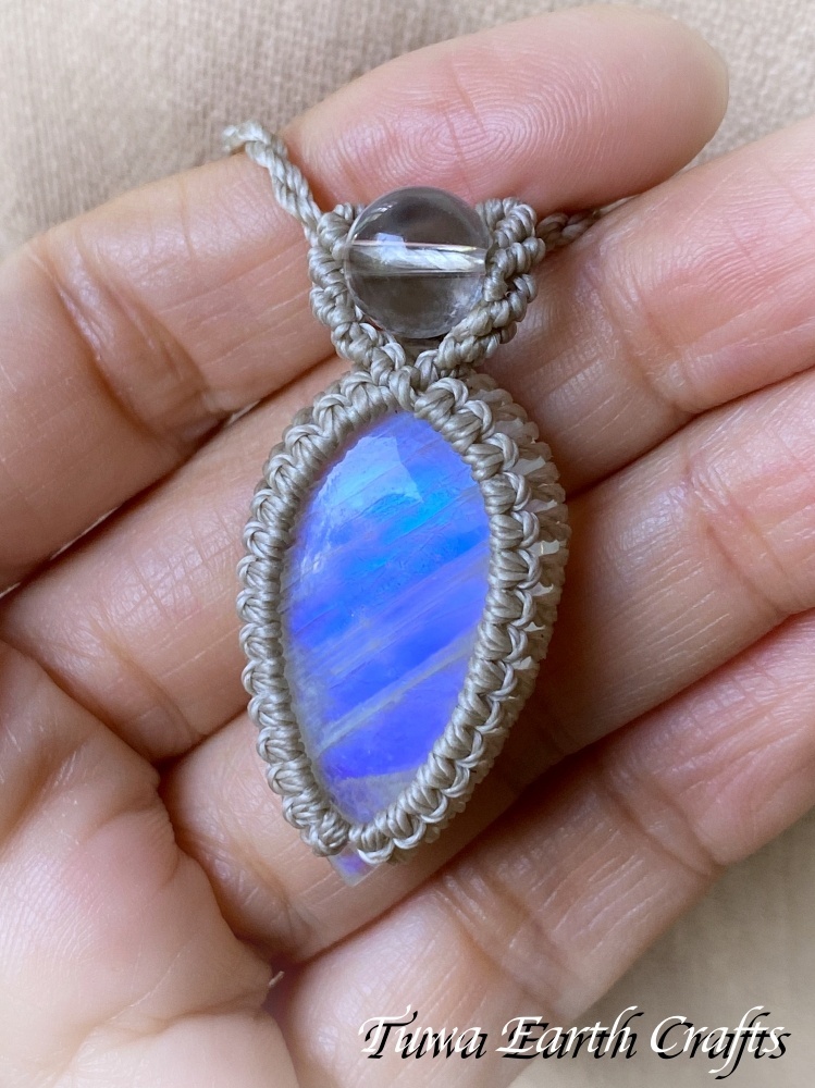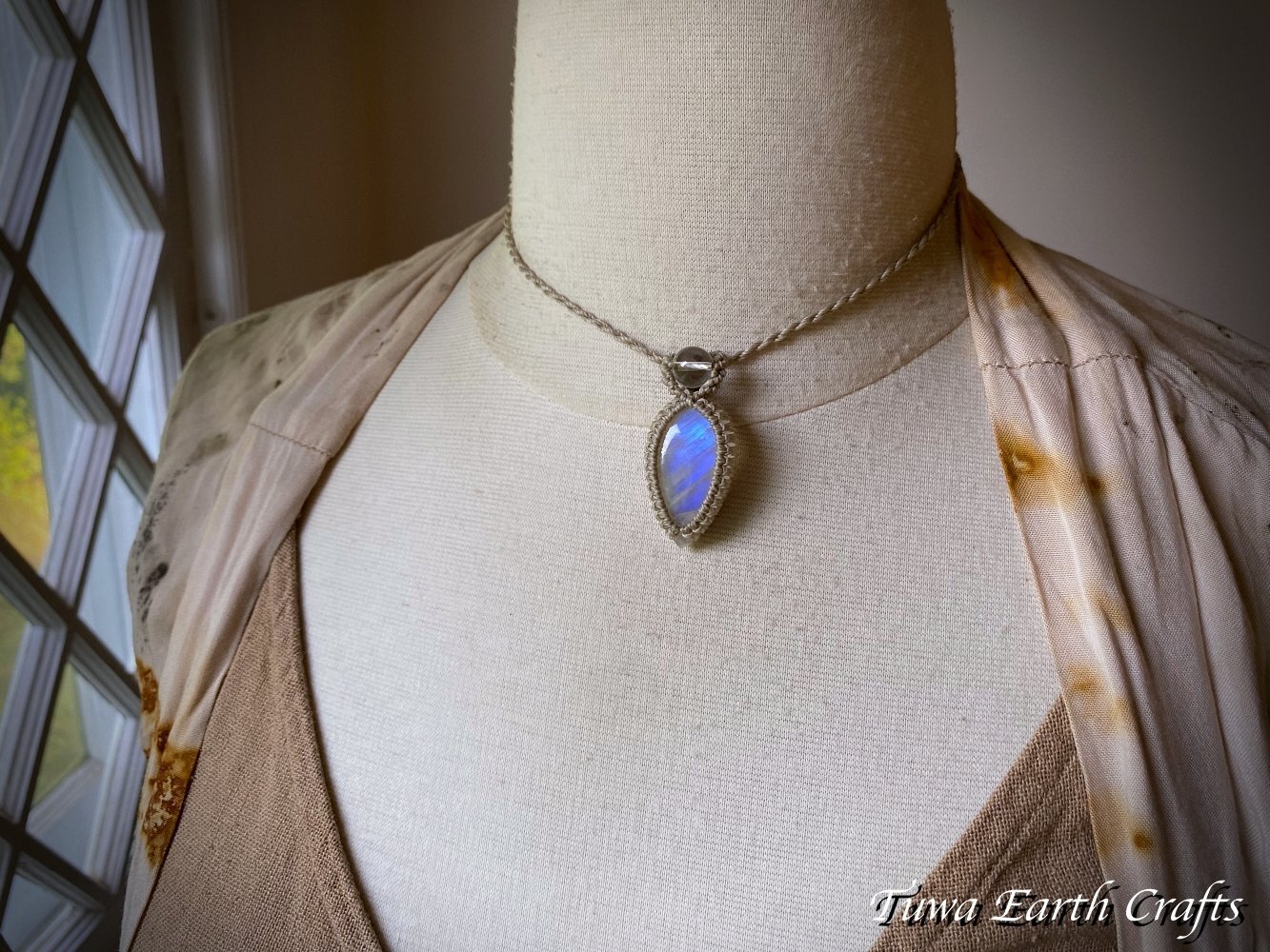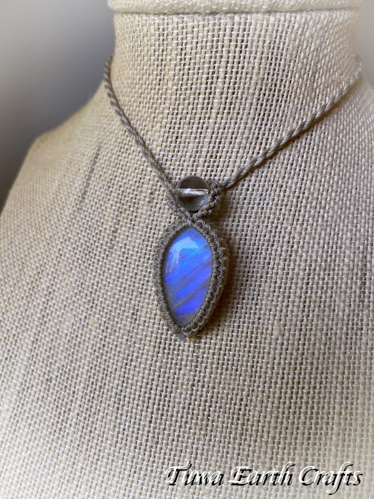 - > 【直感力アップ・潜在能力を引き出す】大ぶり高品質ロイヤルブルームーンストーン ペンダント・ネックレス 1点もの 生成り シンプル&ナチュラル 天然石パワーストーンお守りアクセサリー マクラメ ハンドメイド 癒し効果 6月誕生石
