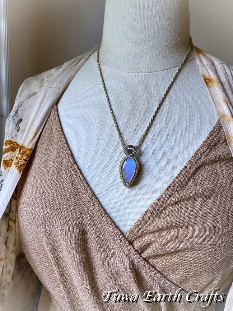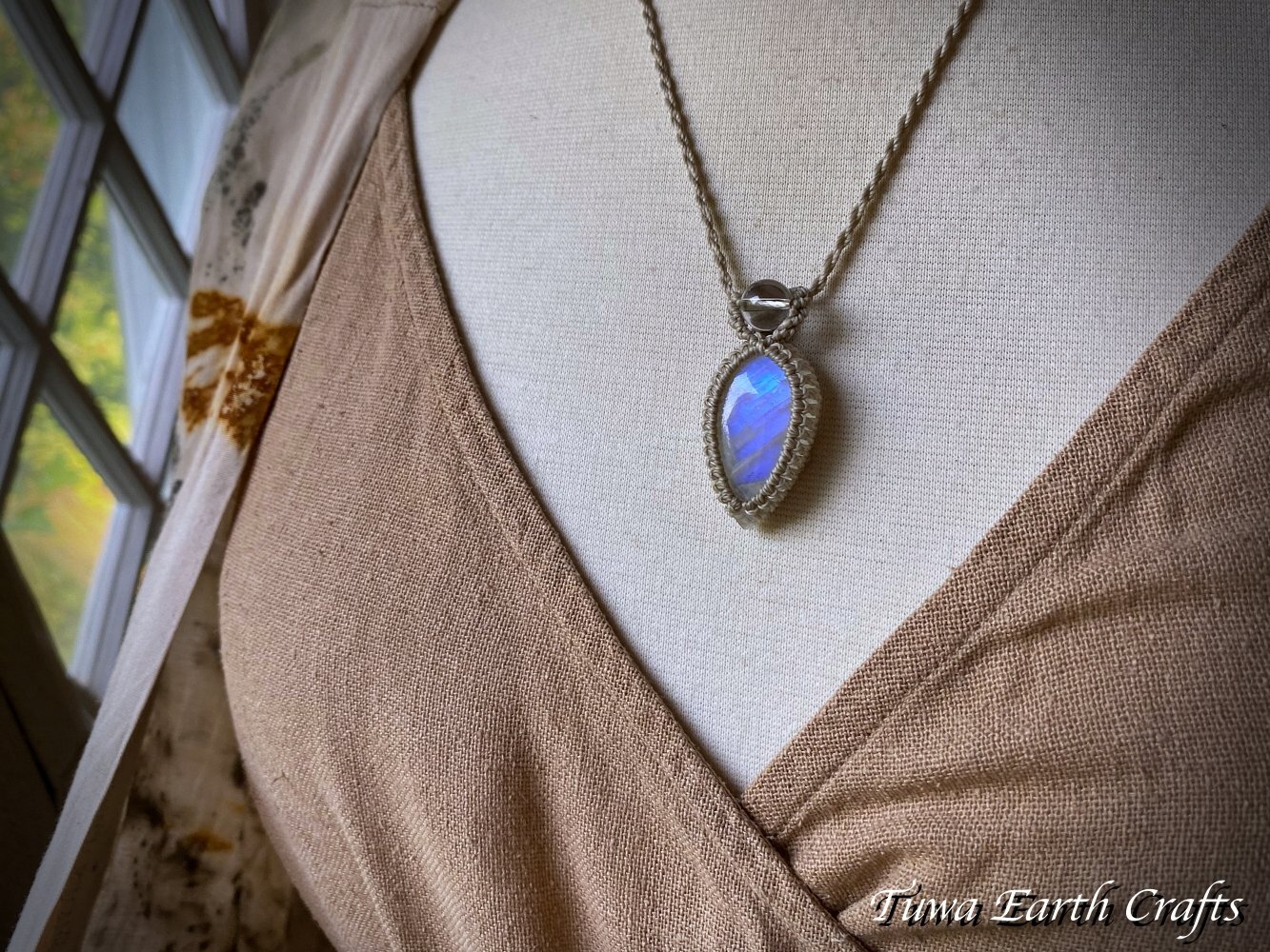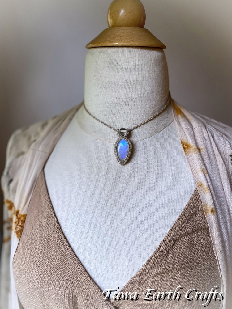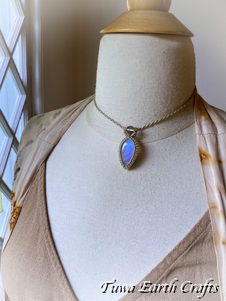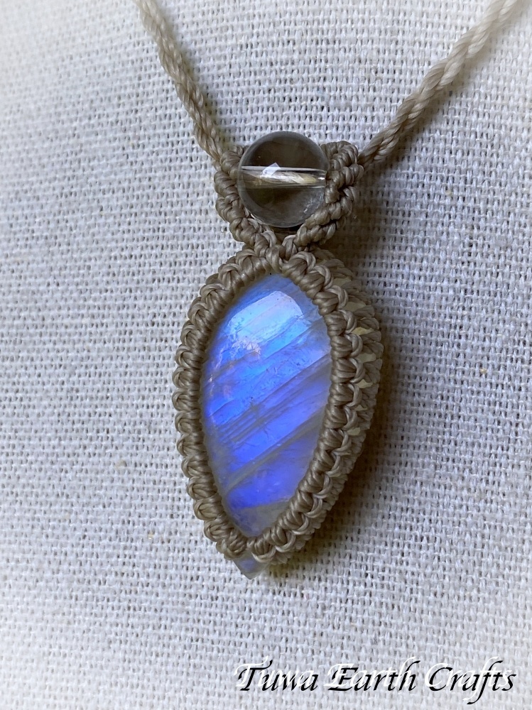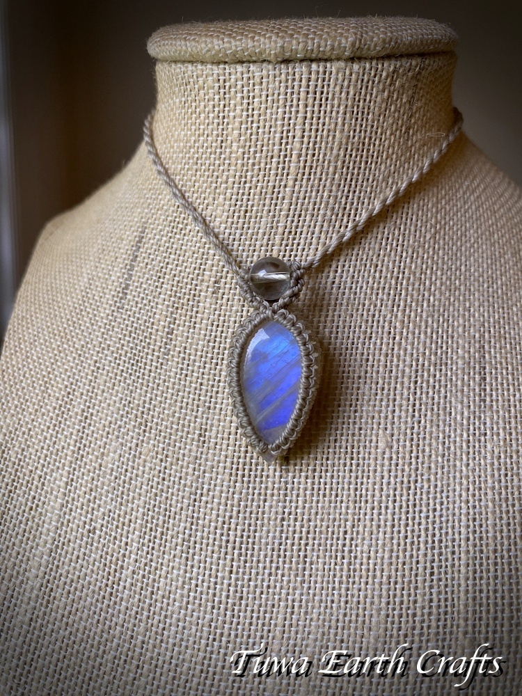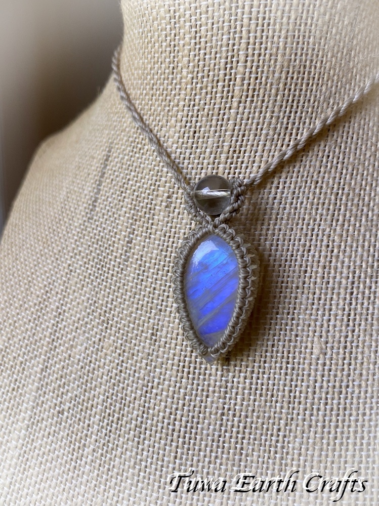 - > 【直感力アップ・潜在能力を引き出す】大ぶり高品質ロイヤルブルームーンストーン ペンダント・ネックレス 1点もの 生成り シンプル&ナチュラル 天然石パワーストーンお守りアクセサリー マクラメ ハンドメイド 癒し効果 6月誕生石