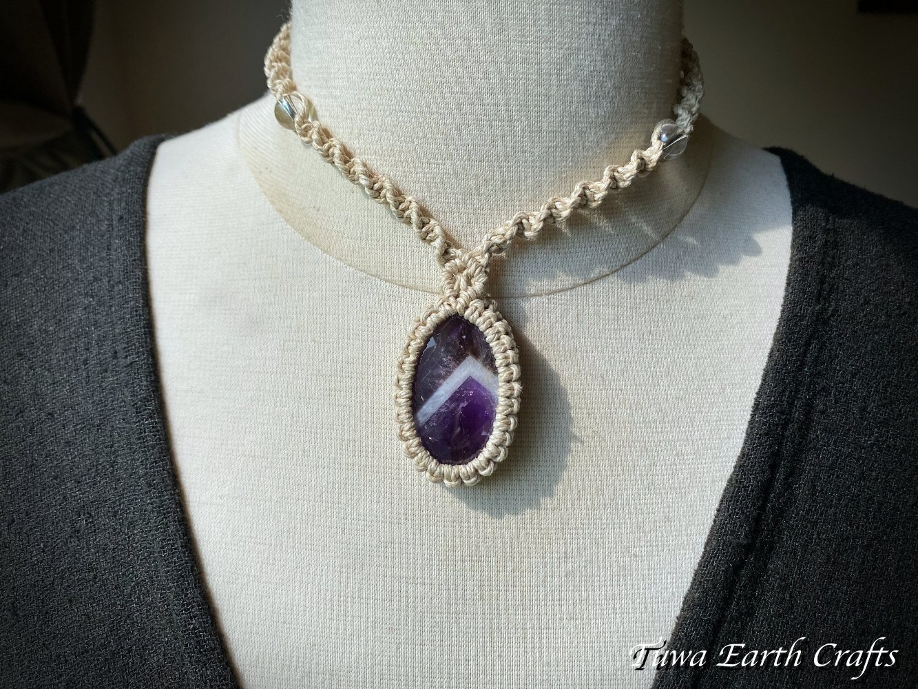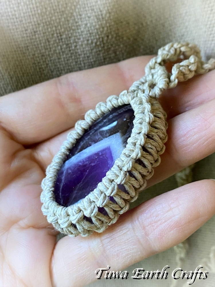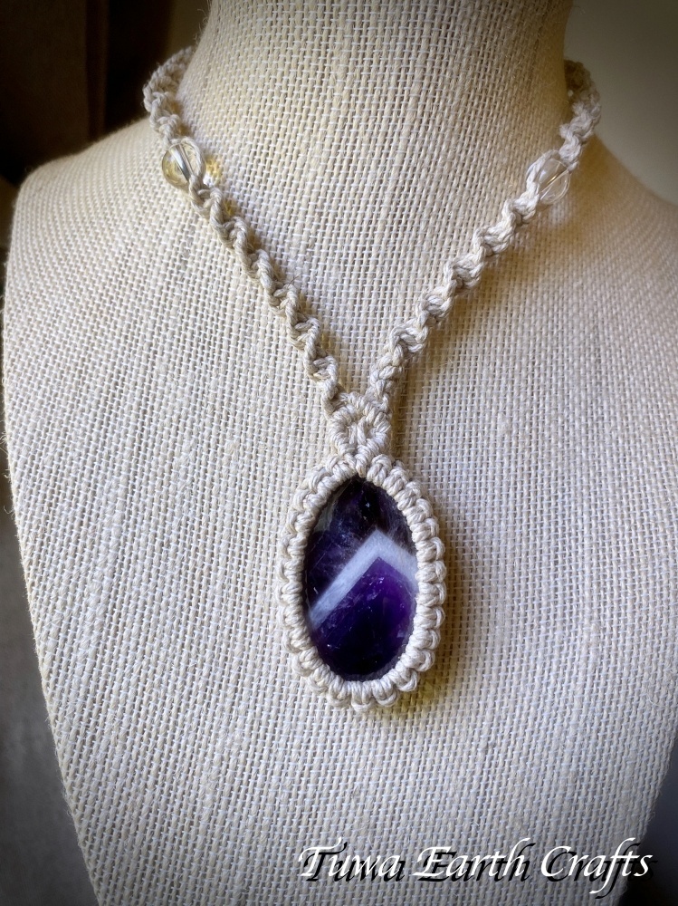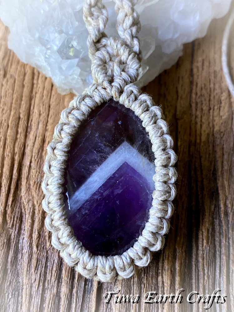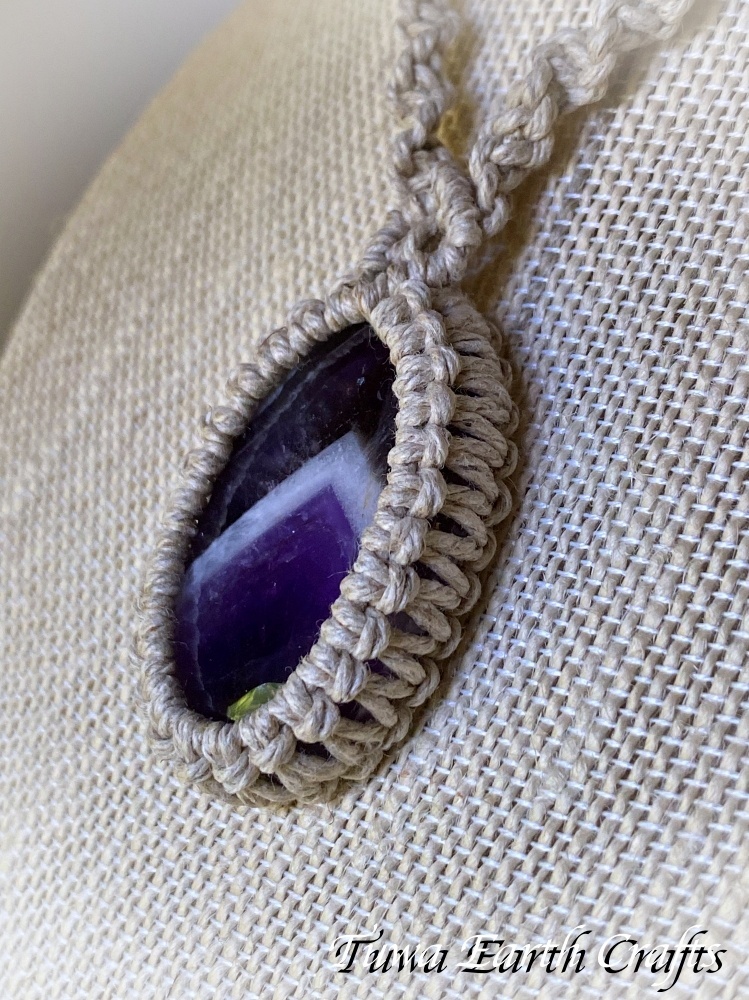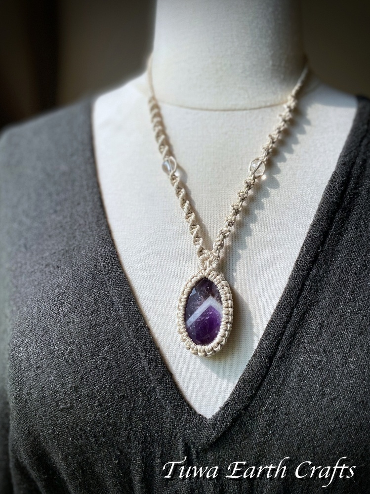 - > 石全長4cm大ぶり高品質シェブロンアメジスト ネックレス チョーカー ペンダント アメジストファントム・ケープアメジスト 地球と身体に優しいヘンプ素材 1点物 シンプル&ナチュラル★無染色 生成り ナチュラル天然素材オーガニックファッション ハンドメイドお守り天然石ヒーリングストーン マクラメアクセサリー