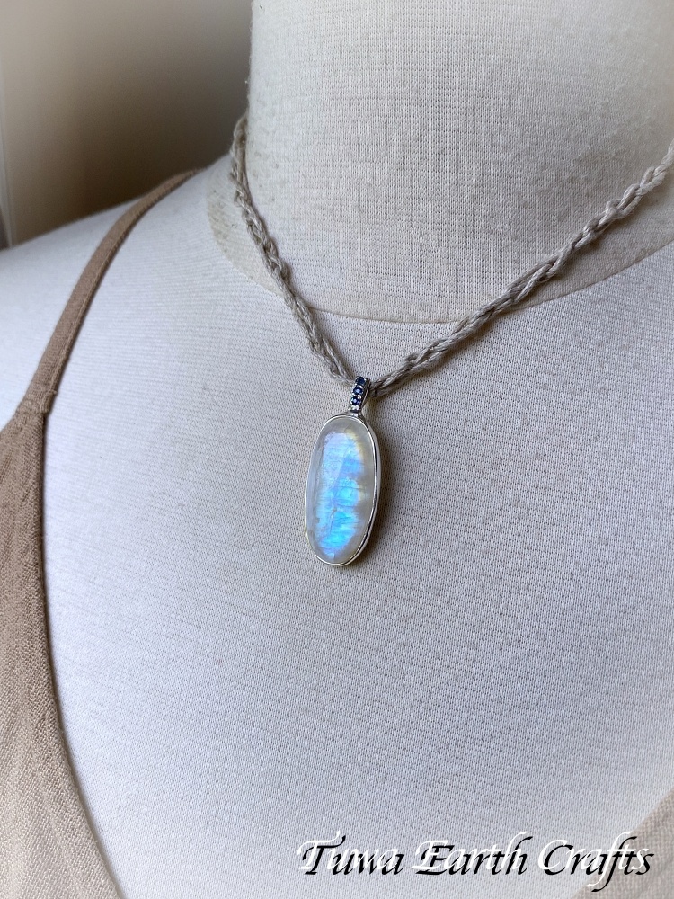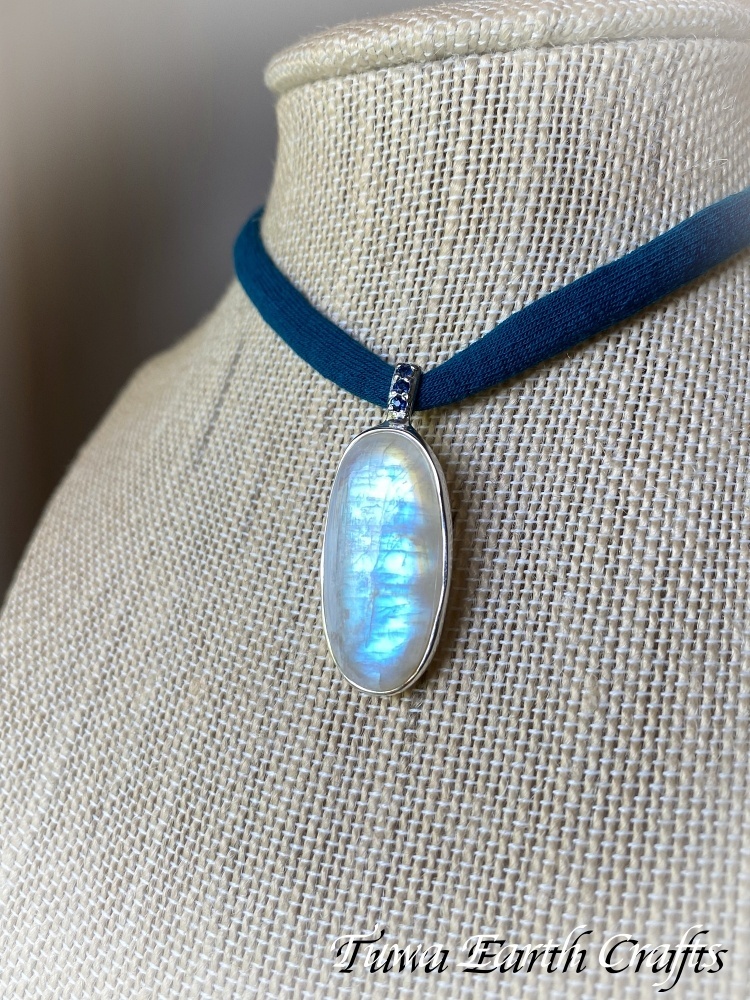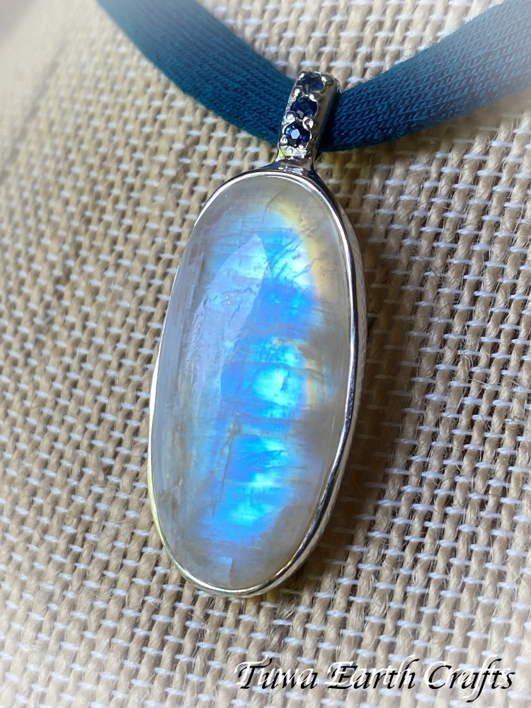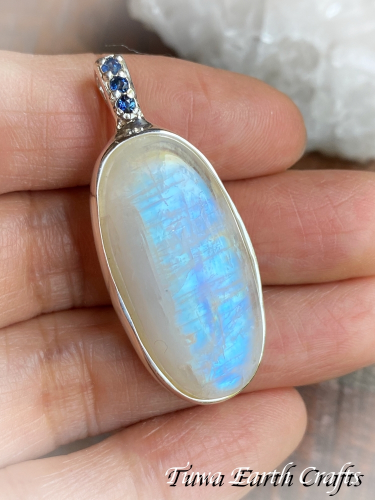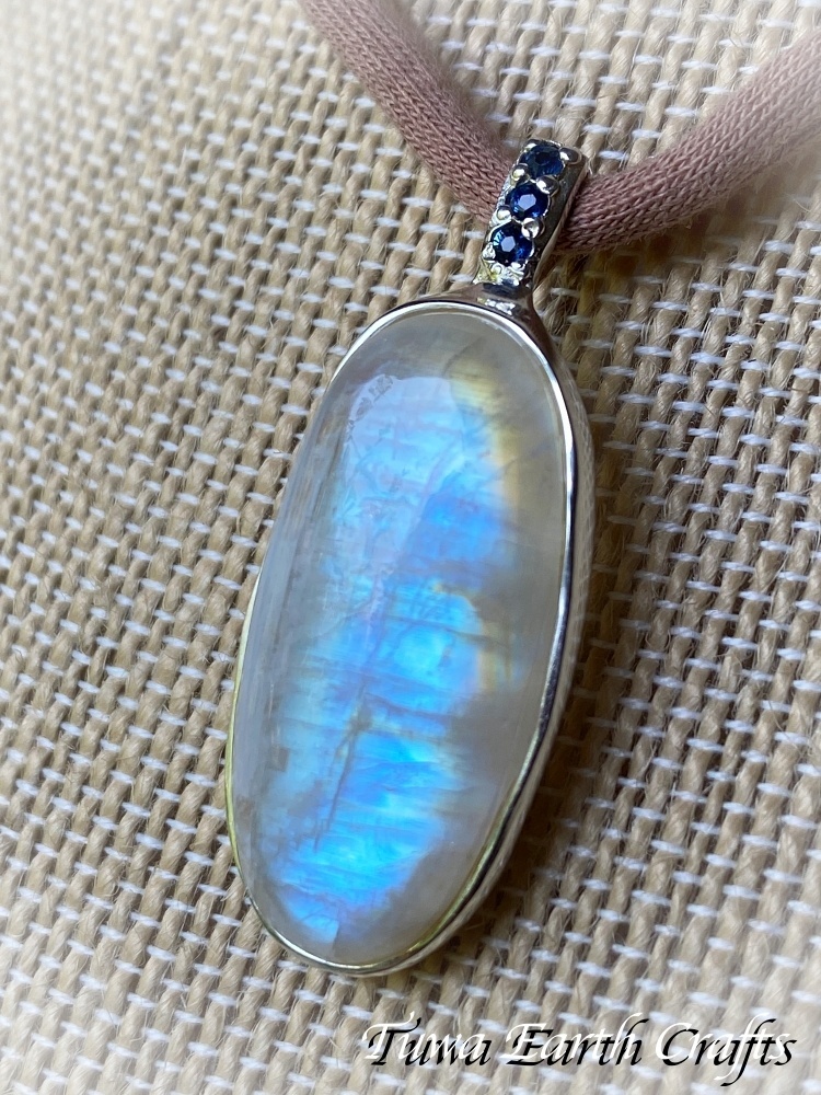 - > 【直感力アップ・潜在能力を引き出す】高品質ロイヤルレインボームーンストーン ペンダントトップ with 宝石質サファイア*ヒーリングストーン 天然石アクセサリー スピリチュアル 恋愛成就お守り 彫金ジュエリー