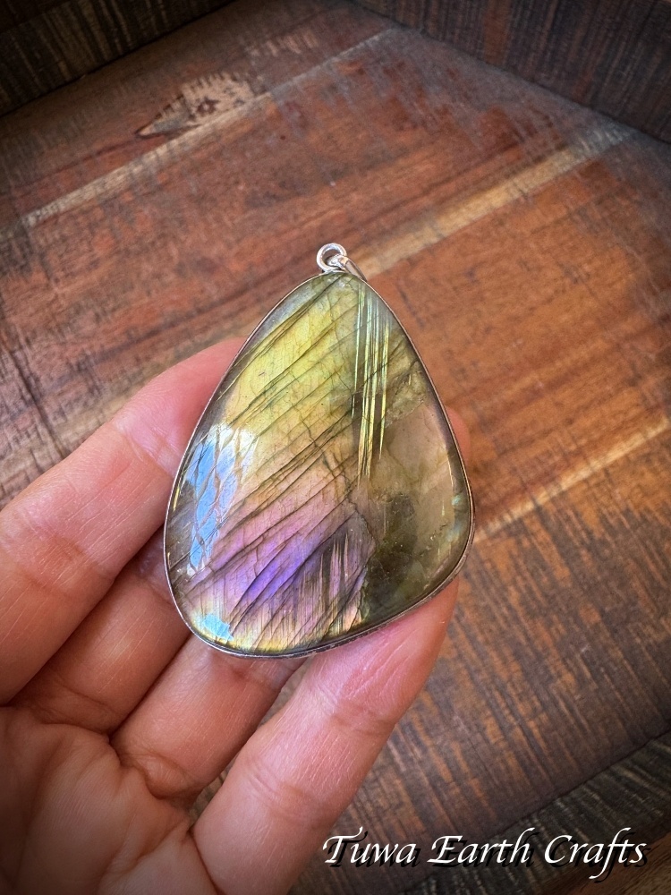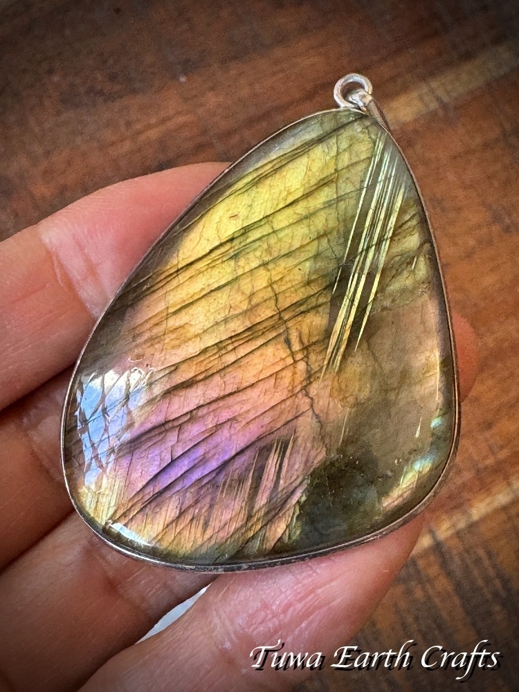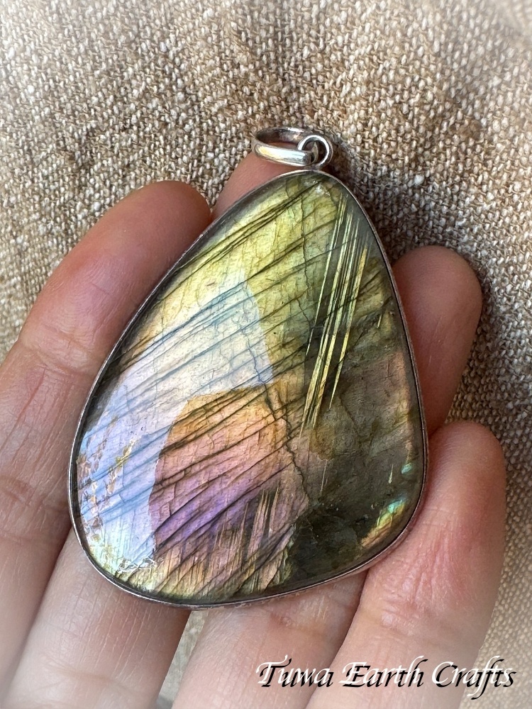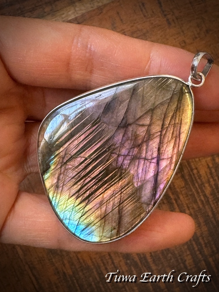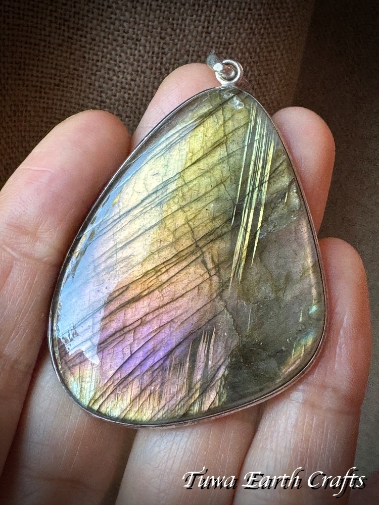 石全長4.9cm大ぶり♪【夢の実現をサポート】高品質 神秘的ラブラドライト ペンダントトップ ゴールド・ピンク・パープル 1点ものヒーリング お守り ジュエリー 天然石パワーストーンアクセサリー スピリチュアル [ST5606]