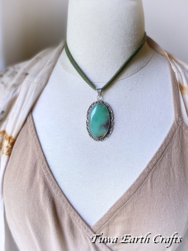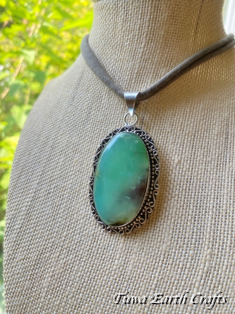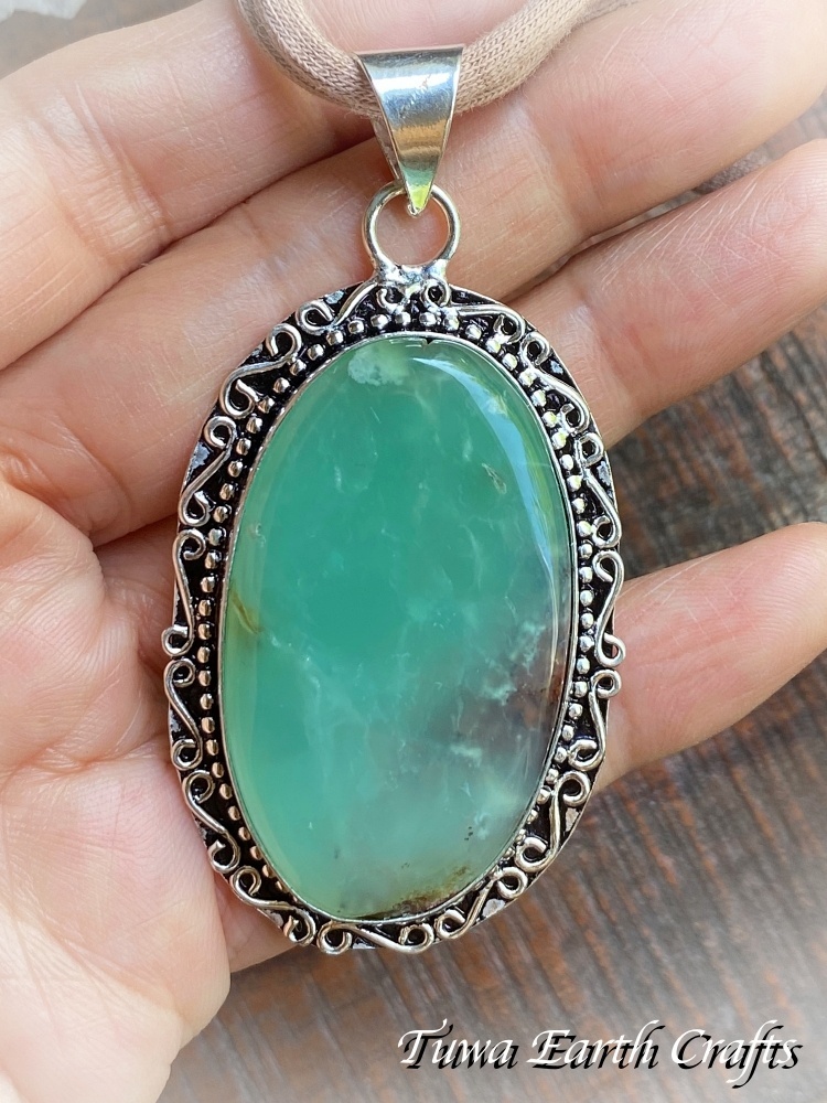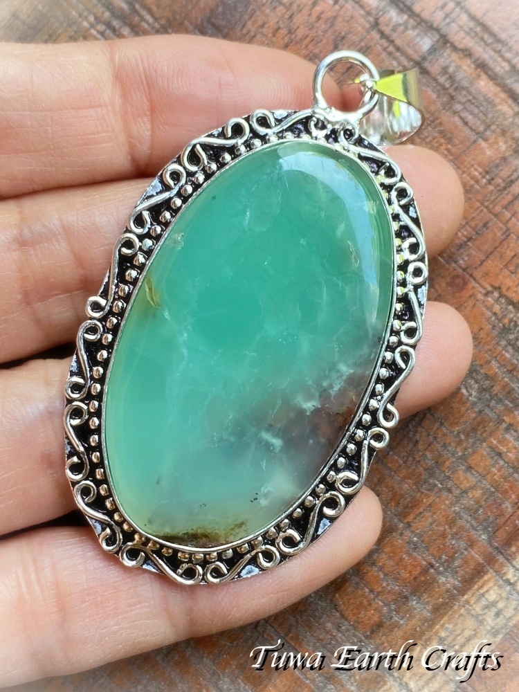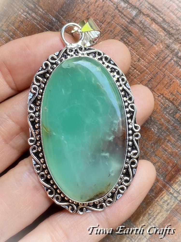 - > 石全長4.3cm大ぶり【自己実現・才能開花・自信アップ】高品質 天然クリソプレーズ ペンダントトップ ヒーリング お守りジュエリー パワーストーン 天然石アクセサリー