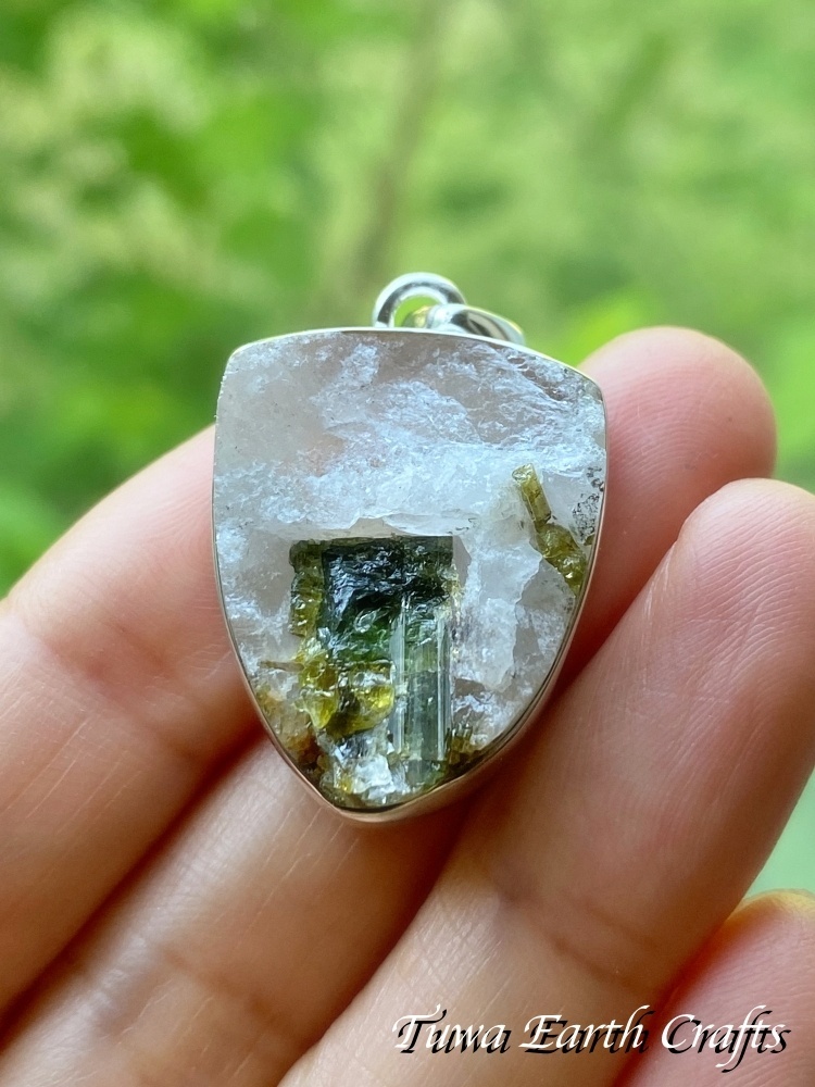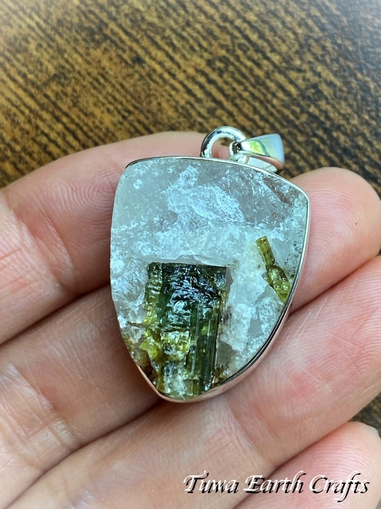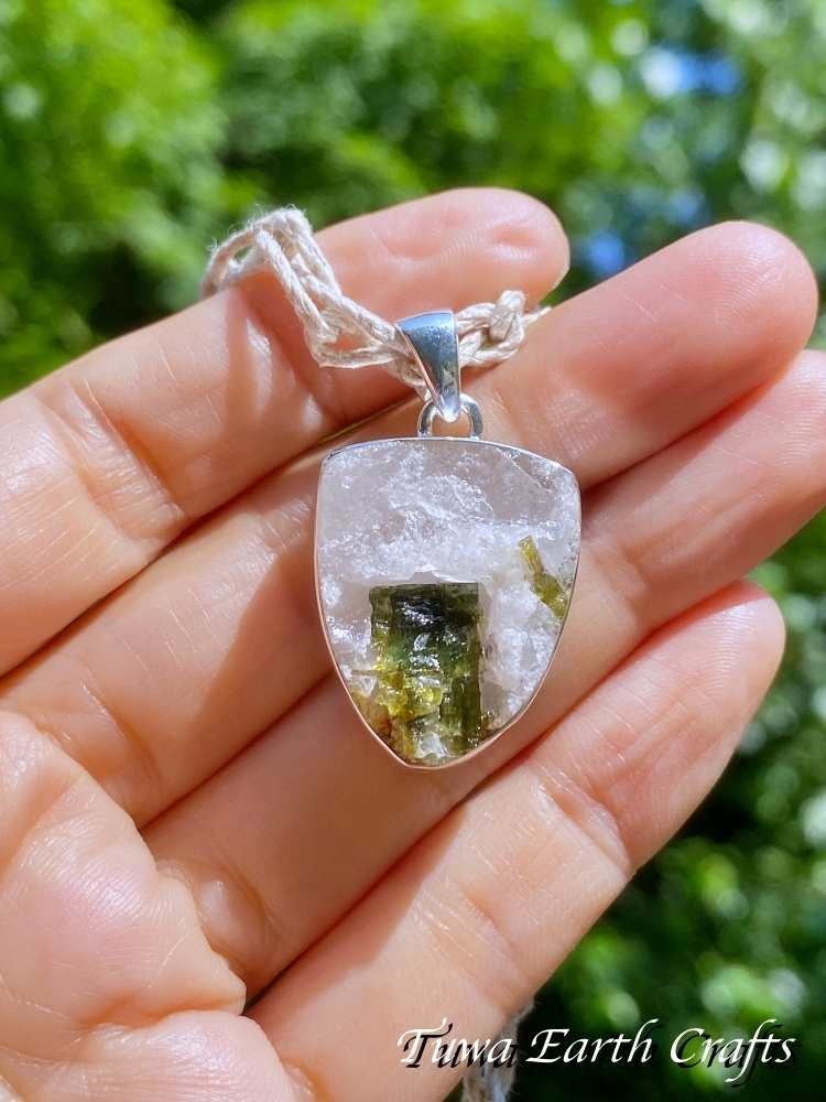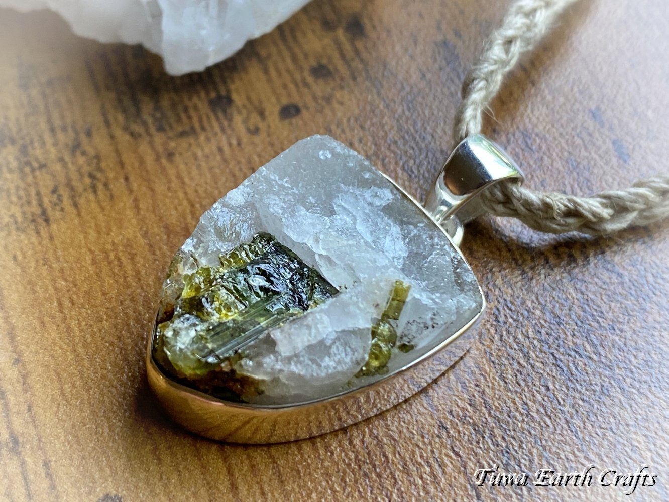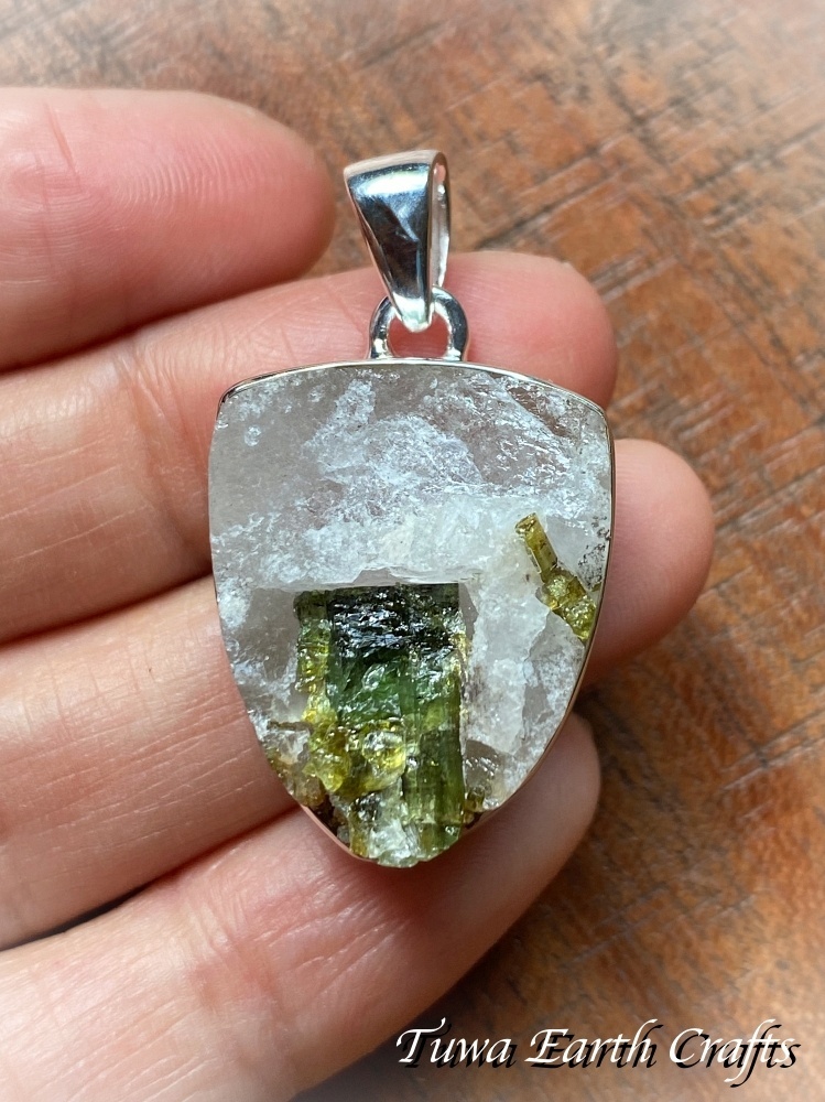 - > 【浄化・保護・開運・金運アップ】高品質グリーントルマリンインクォーツ原石 ペンダントトップ 1点もの パワーストーン 天然石 アクセサリー ヒーリングストーン お守りジュエリー