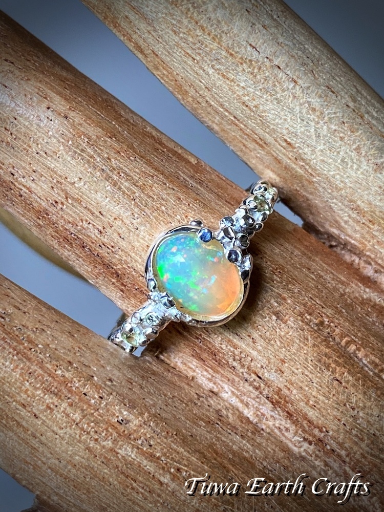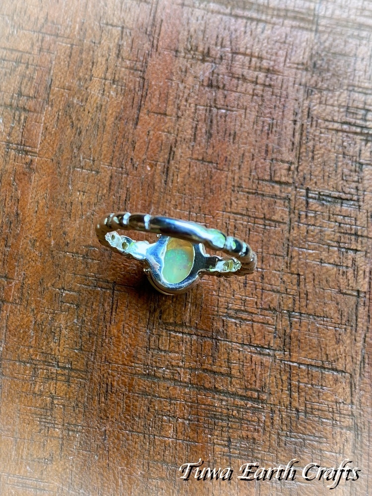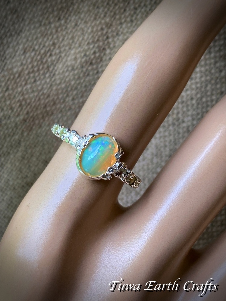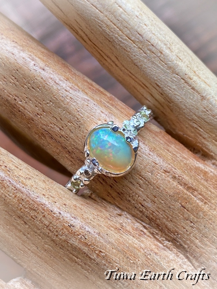 高品質エチオピア産オパール 指輪リング with キラキラ宝石質ペリドット 14号*1点もの パワーストーンお守りアクセサリー天然石 銀細工 彫金 スターリングシルバー ヒーリングジュエリー [ST5413]