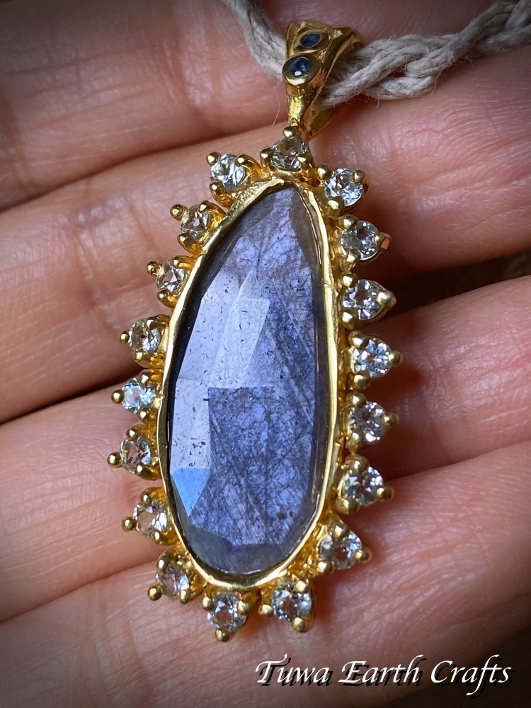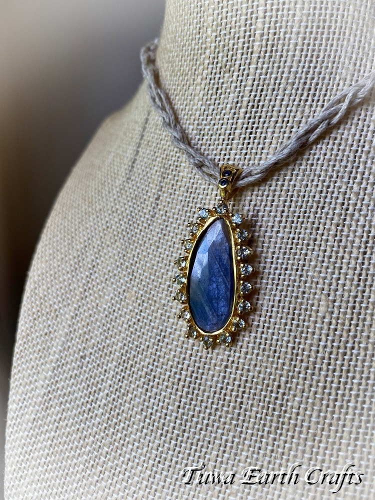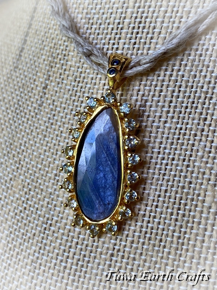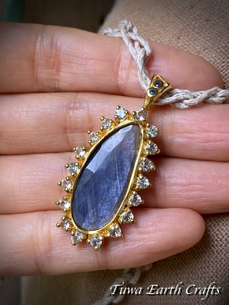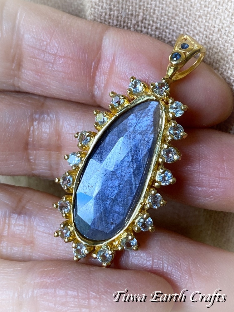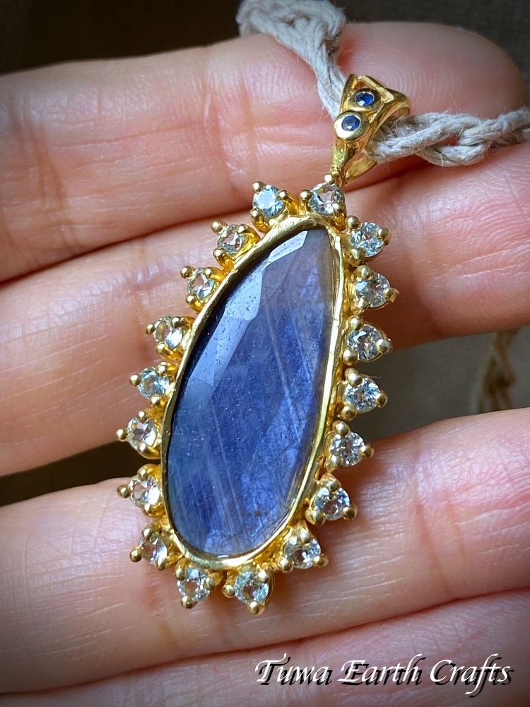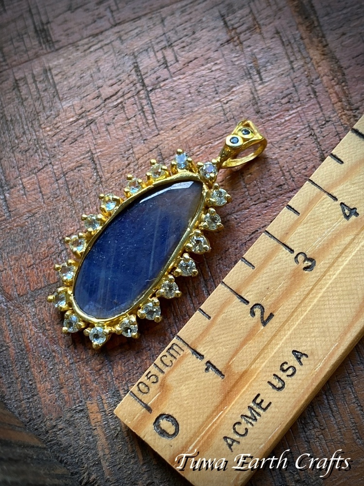 - > 【金運アップ・邪気払い・事業者お守り】高品質 天然ブルーサファイア ペンダントトップ with 宝石質ブルートパーズ★ヒーリングストーン 天然石 個性派 1点ものハンドメイドジュエリー 9月誕生石 彫金 銀細工