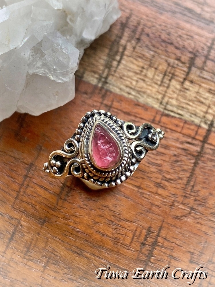 【自信・積極性・やる気アップ】天然ルビー原石 指輪リング17号*高品質 天然石パワーストーンアクセサリー*ヒーリングジュエリーお守り [ST5403]